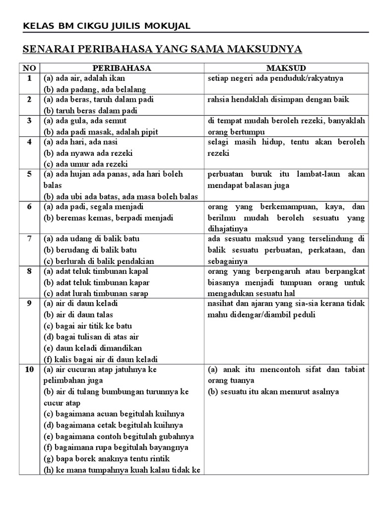Peribahasa Yang Sama Maksud 1 from reader015.dokumen.tips Aku dimainin sama adek tiriku saat pulang sekolah. Oleh itu, cikgu kongsikan di sini untuk rujukan dan panduan bersama. (seseorang yang akan mengikut sifat dan tingkahlaku bapanya). Berikut adalah antara peribahasa yang mempunyai maksud yang sama atau hampir sama. Beginilah yang dikatakan bapa borek, anak rintik. Dalam hal ini, petir bisa menghantui pengguna ponsel sebagai mitos diyakini kebenarannya. Belakang parang sekalipun, kalau diasah nescaya akan tajam juga. Seperti tanduk bersendi tulang 3.